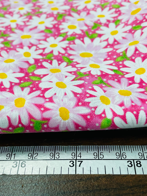Daisies Depression feedsack fabric 20s, 30s white flowers on pink background by the yard