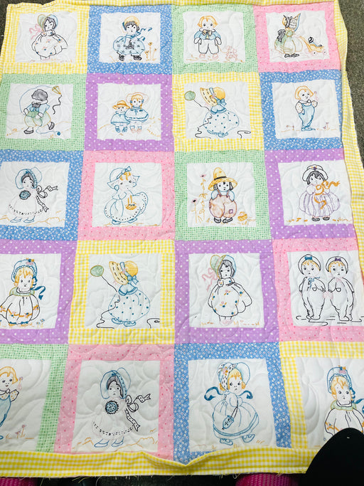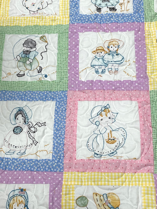 EtsyOriginal price $185.00 - Original price $185.00Original price$185.00$185.00 - $185.00Current price $185.00Baby quilt vintage children images Sashing is reproduction feed sack prints Amish made Yellow gingham backing 100% cotton Wash warm mild soap No ...