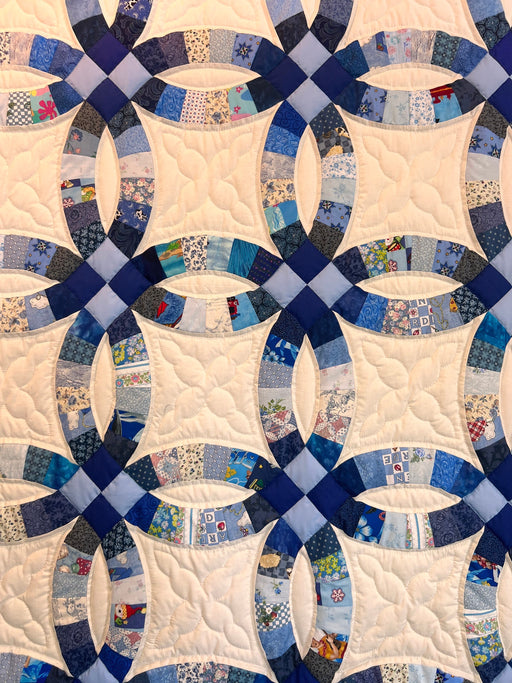 Blue Double Wedding Ring Quilt Handmade Hand Quilted Heirloom